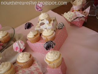 I made yummy cupcakes with a delicious frosting recipe I found on Pinterest. Topped with pearl sprinkles, they were the perfect girly cupcake. I thought the patterned boxes were perfect holding the cupcakes.